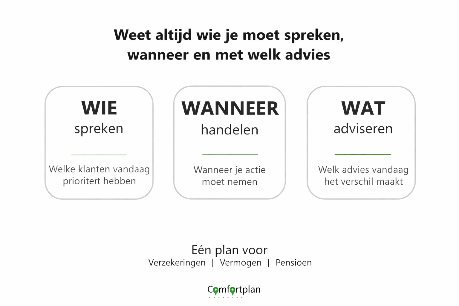 De Comfortplan-tool is meer dan software. Het is jouw digitale assistent die structuur brengt in je klantgesprekken, opvolging vereenvoudigt en jouw advies persoonlijker maakt. Eén plan. Eén tool. Eén aanpak.